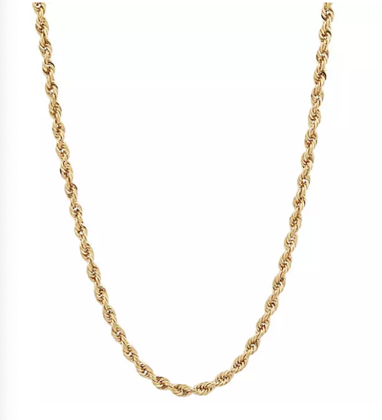 14K 18" Yellow Gold Diamond-cute Rope Chain w/ Lobster Clasp